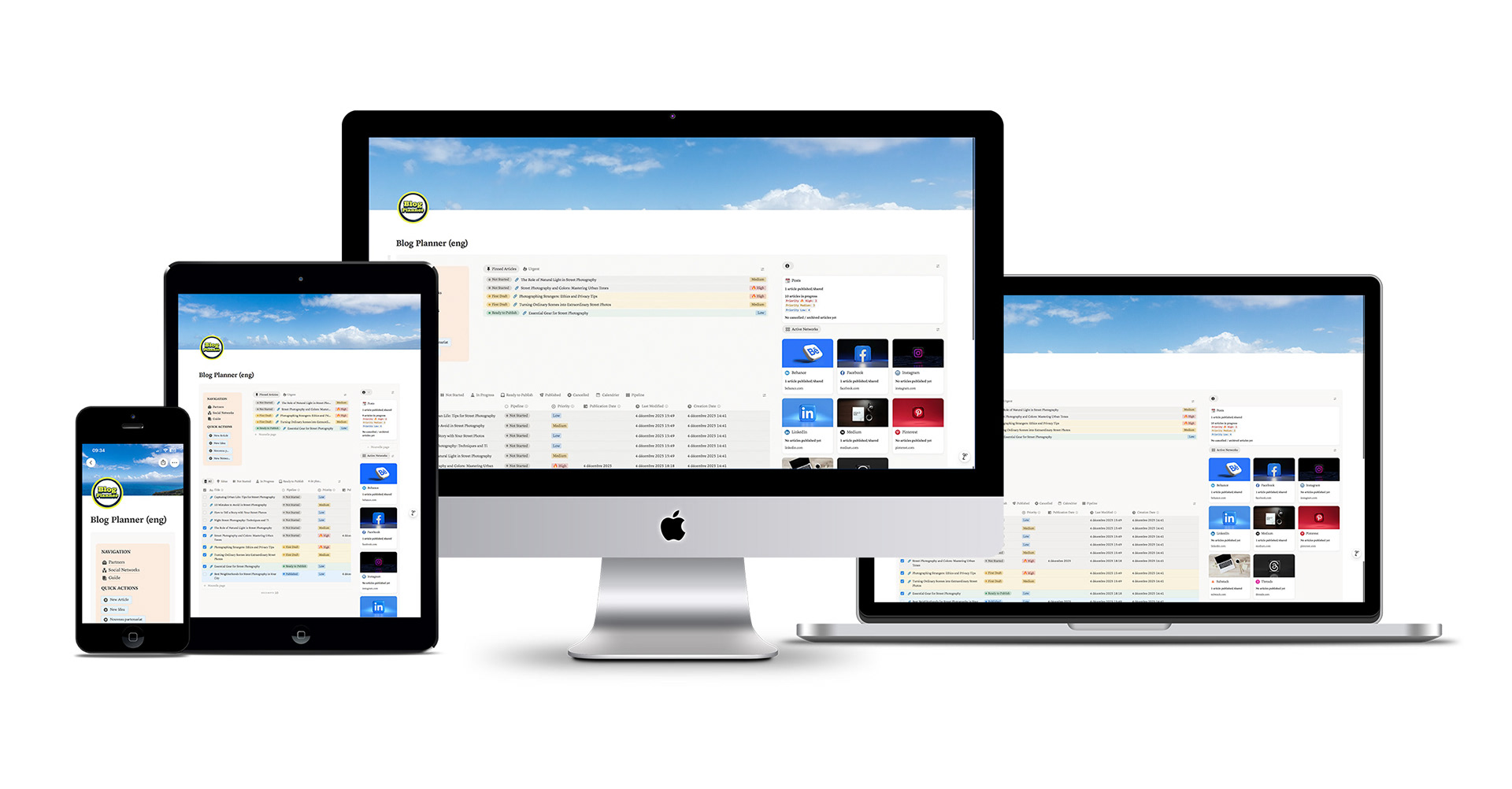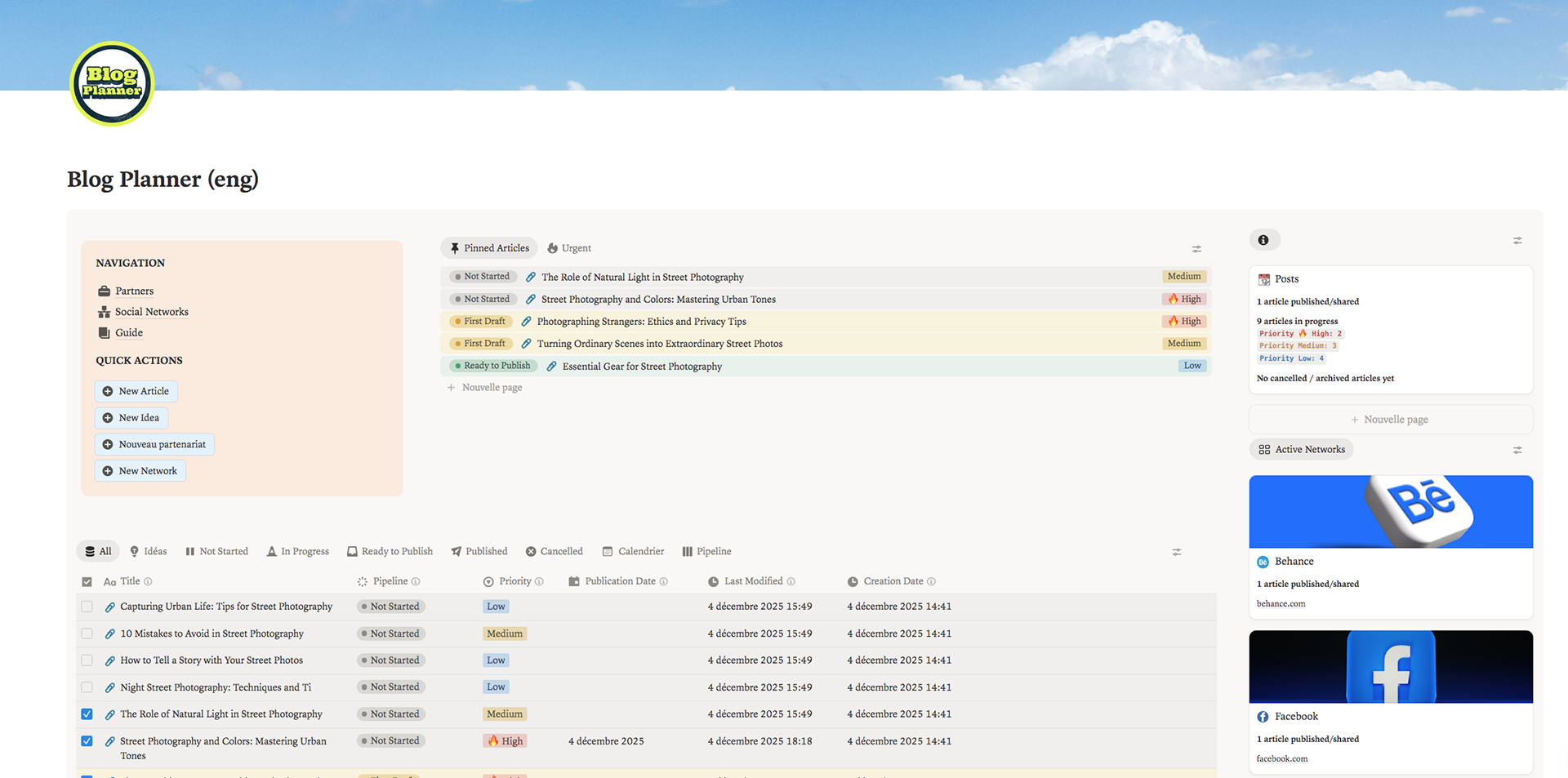 Blog Planner est un template Notion conçu pour les créateurs, blogueurs, photographes, rédacteurs et toutes celles et ceux qui publient régulièrement des contenus en ligne.