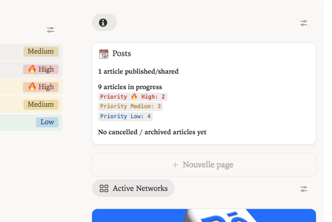 ✔️ Statistiques automatiques : articles publiés, drafts en préparation, priorités