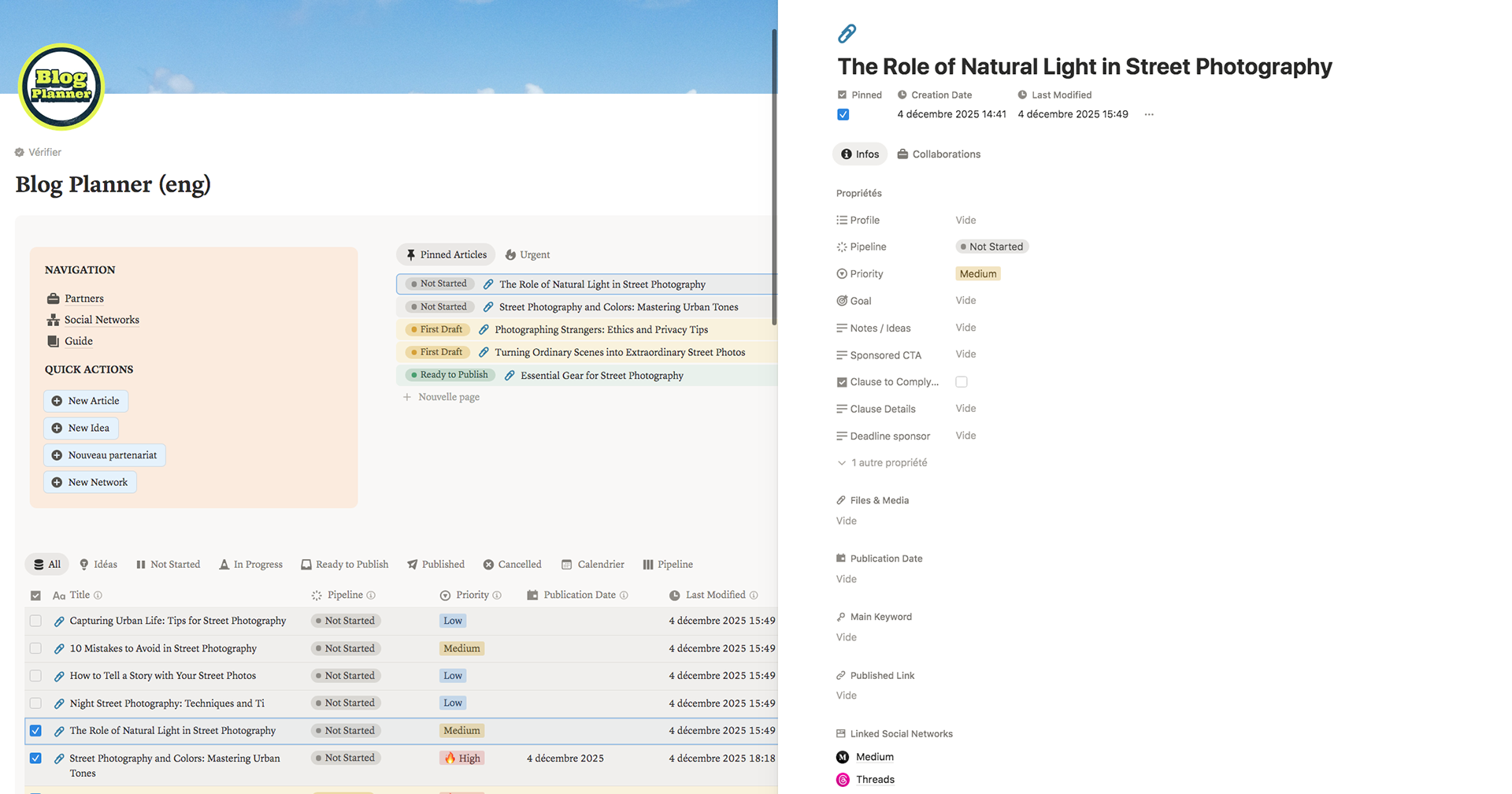 Blog Planner — Le template Notion pour organiser, écrire et publier vos articles avec fluidité